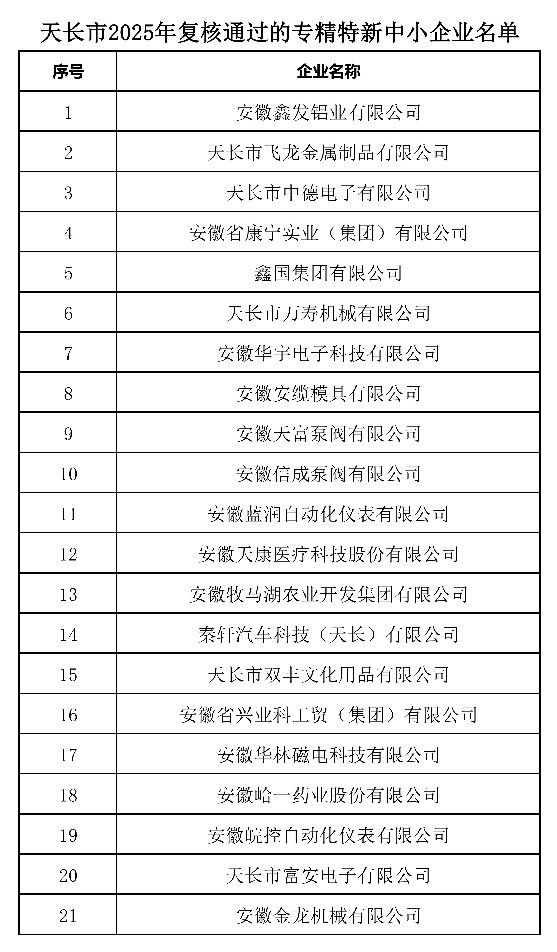 2025年12月26日,安徽省工信厅公布了2025年安徽省专精特新中小企业认定及复核结果。