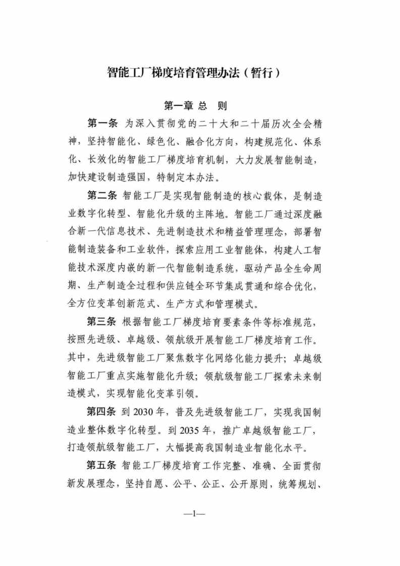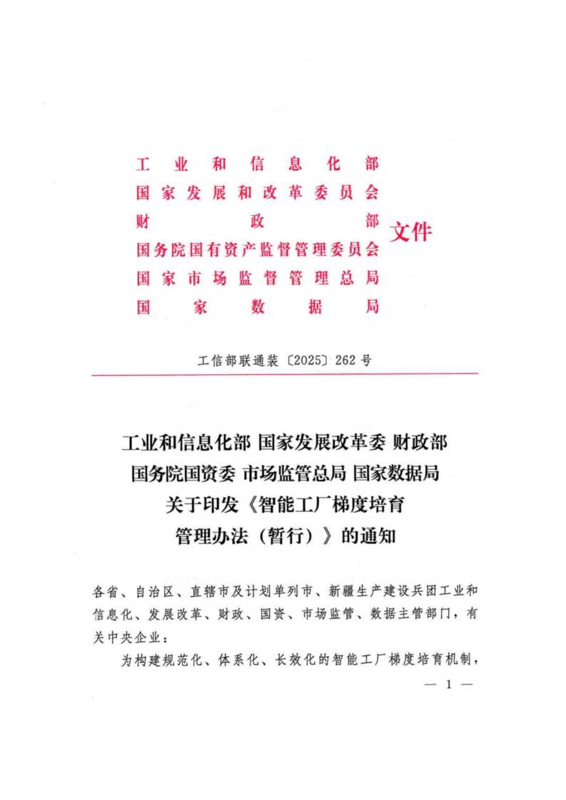 智能工厂梯度培育管理办法(暂行)印发(工信部联通装〔2025〕262号)