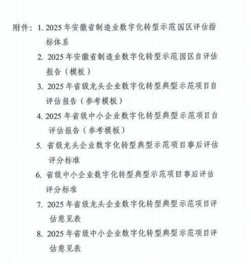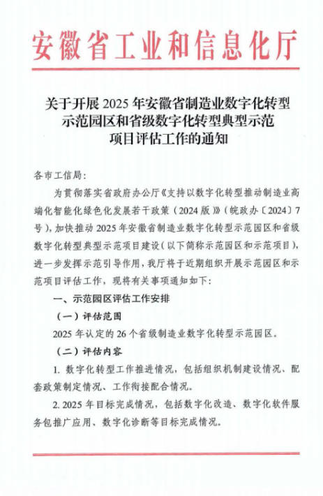 2025年安徽省制造业数字化转型示范园区和省级数字化转型典型示范项目评估工作开始